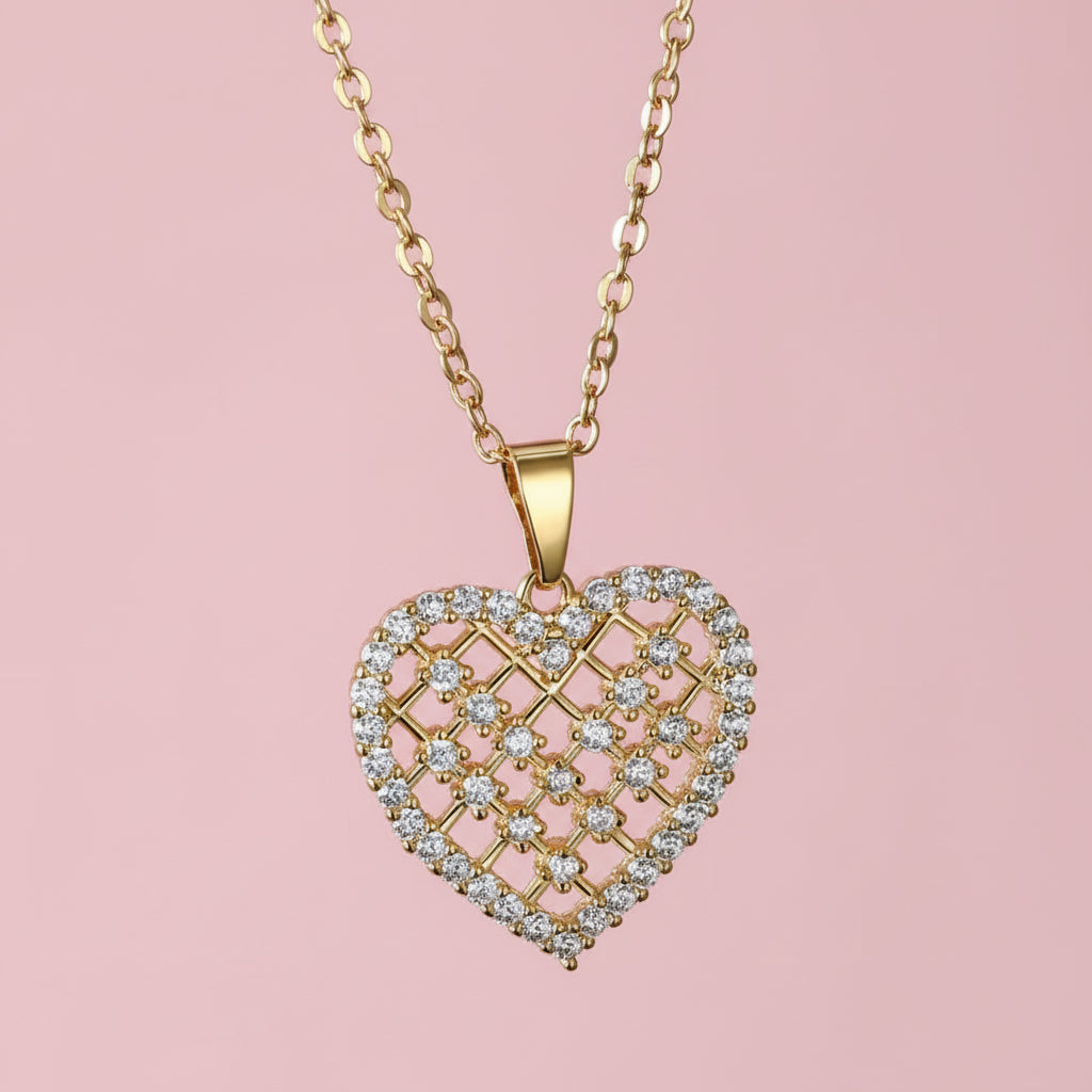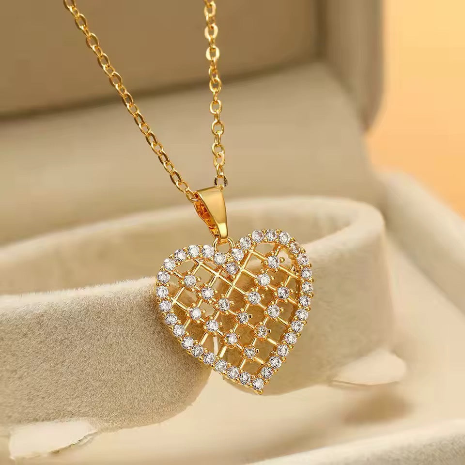 Adorn yourself with the elegance of this Zircon Grid Love Necklace. Featuring a reticular heart pendant with sparkling zircon crystals, this Korean fashion piece exudes romance and sophistication. Perfect for weddings or everyday wear, the cute and stylish design will make you stand out in any crowd. Elevate your jewelry collection with this must-have accessory.