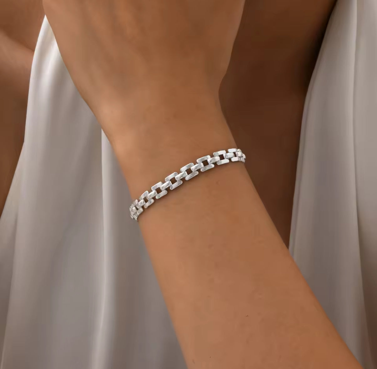 Elevate your style with our minimalist Watch Band Bracelet. Designed for the modern woman, this stainless steel waterproof bracelet features a sleek link chain for a chic and trendy look. Give the gift of timeless elegance with this stunning piece of jewelry.